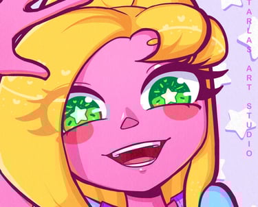 I'm a life-long fan of bouncy animations, colorful characters, and determination. Since I could hold a pencil, I would draw whatever came to mind. As I grew older, I realized almost everything was a source of inspiration for character designs and stories.