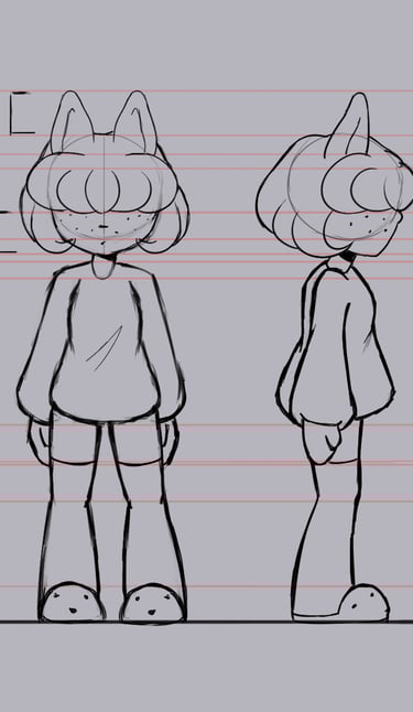 I have my own online video series where I would turn uncommon animals into character designs. My first designs were turning sea creatures into characters. The main two I ended up using in my short film are Ellie the Sea Bunny Slug girl and Sapphire the Blue Sea Dragon Girl. Since I already had designed characters, I chose to simplify and stylize them for animation and make them the featured stars of my film!
